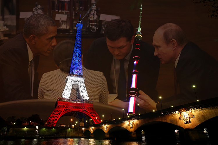 В прямом эфире (трансляция «Вестей») Путин во время встречи с военными обращается к командиру ракетного крейсера «Москва»: «В ближайшее время в район ваших действий подойдет французская военно-морская группа во главе с авианосцем. Нужно установить с французами прямой контакт и работать с ними как с союзниками». Последнее слово действует на эфир тектонически: происходит мгновенный переход от «партнеров» к «союзникам». Весь вечер: «Президенты Путин и Олланд обсудили наращивание сотрудничества, в том числе военных и спецслужб». Европейский спецкор: «Теперь мы с Францией союзники — чего еще недавно и представить себе было нельзя». «Существующие разногласия между Россией и Европой не должны мешать». «Вести» в новостях дают в записи и обращение Олланда к французским полицейским. «Договоримся обязательно», — имея в виду Запад, жизнерадостно говорит очередной гость на «Вестях».