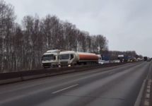 Аналогичные акции проходят на Московском шоссе в нижнем Новгороде и в Череповце. Фуры, занимая все полосы догоги, движутся со скоростью пешехода, не давая проехать другим автомобилям.