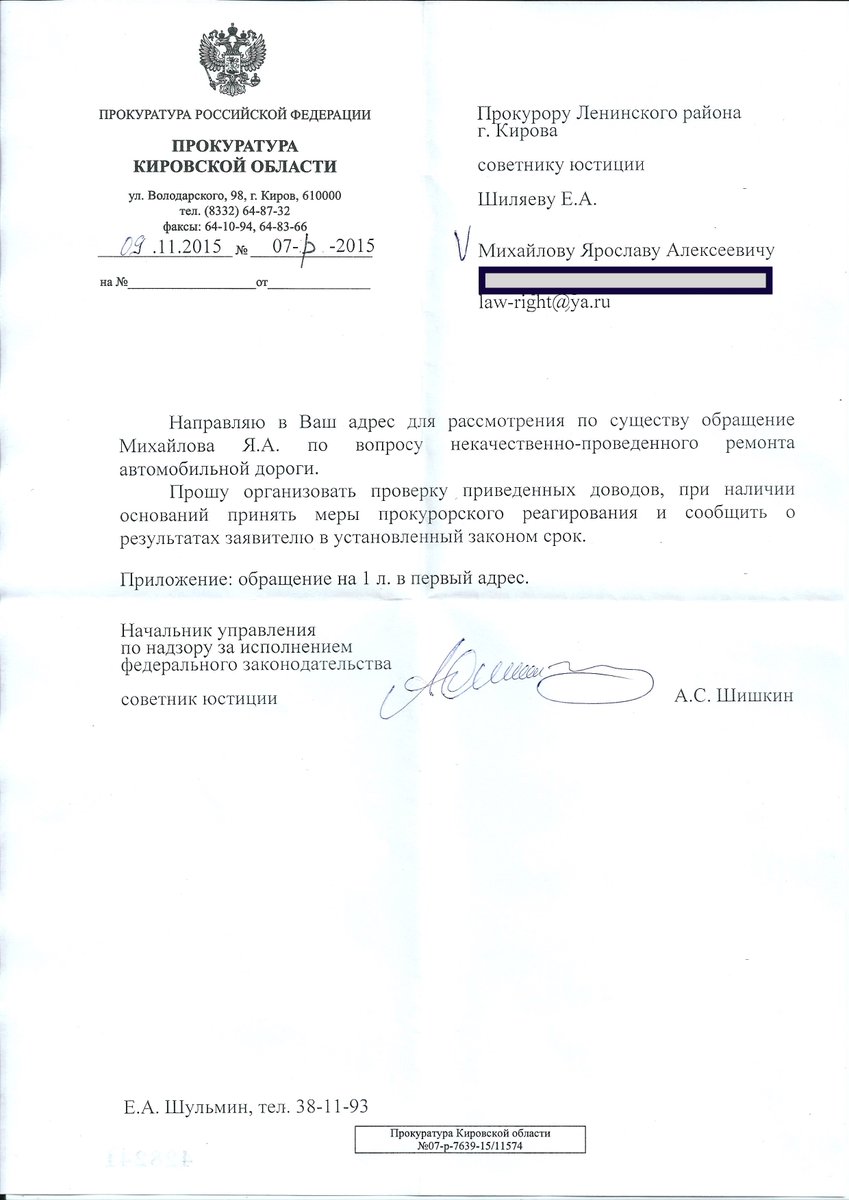 Асфальт в Победилово, прокуратура