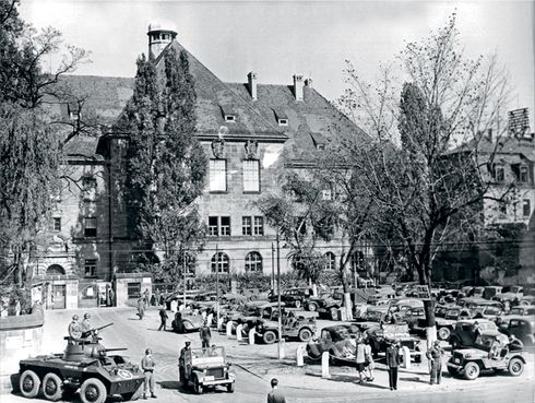 Вход в здание Международного военного трибунала усиленно охранялся военными, Нюрнберг, 1 октября 1946 года