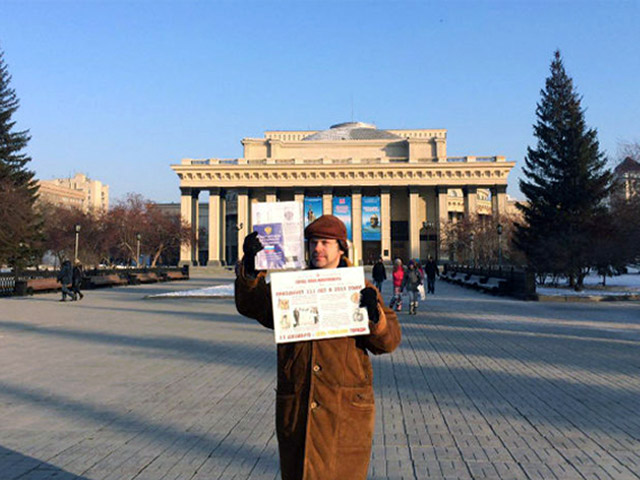 Старков простоял на площади Ленина около получаса, продержав в руках плакат о "городе Ново-Николаевске".