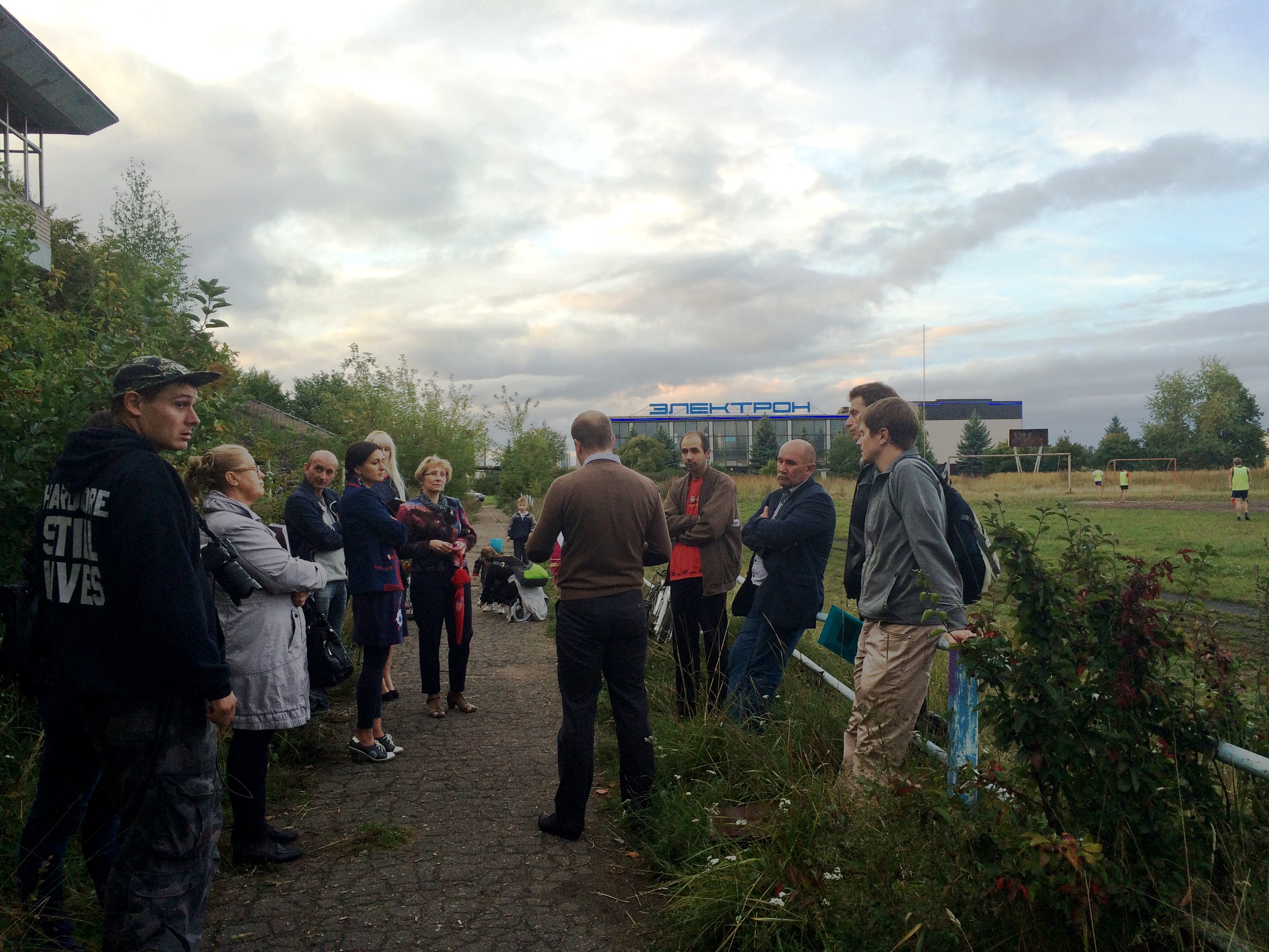 На слушаниях инвестору пришлось нелегко. Для начала, изучив историю приватизации, общественники усомнились в праве собственности ООО "Электрон" на советские спортивные объекты и земельный участок (и этот вопрос до сих пор не закрыт). Представитель собственника выслушал неизбежные претензии за плачевное состояние трибун и футбольного поля и не смог ответить на вопрос, во сколько раз увеличится стоимость земли, выкупленной у Росимущества в 2013 году за 2,5 процента от кадастровой стоимости (чуть более чем за полтора миллиона рублей). Очень многое было сказано и о том, что значит спорт и физкультура для здоровья общества.