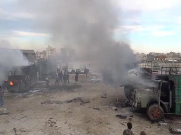 Нападение было совершено в пяти километрах от границы, когда автомобили двигались в город Аазаз. Жертвами бомбежки стали семь человек, еще десять человек получили ранения. Характер груза неизвестен – это могла быть гуманитарная помощь или коммерческий груз.