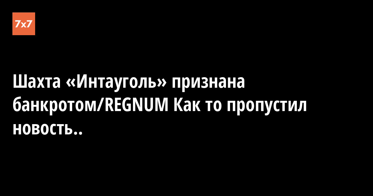 Шахта «Интауголь» признана банкротом/REGNUM Как то пропустил новость..