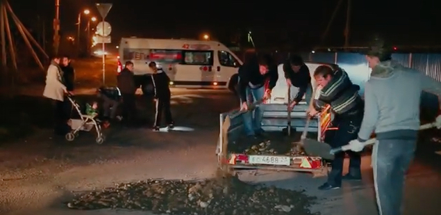 Жители ЖК «Прованс» и ЖК «Британия» вооружившись тачками и лопатами решили своими силами восстанавливать подъездную дорогу к комплексам.