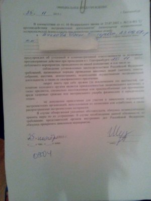 К активистам группы «Екатеринбург — За свободу» приходили домой и в вуз некие люди и брали с них обещания не проводить мероприятия по случаю приезда в город Путина. Об этом в Facebook пишет одна из активисток, Елена Шукаева. Она цитирует собственное заявление в прокуратуру, которое написала по следам этого визита. Шукаева пишет, что к ней в квартиру рано утром 25 ноября пришли трое, двое были в полицейской форме, один в штатском, они не представились и дали ей подписать официальное предупреждение об ответственности при проведении мероприятия и недопустимости экстремистских действий. «Я никакие мероприятия не организовывала, считаю такие визиты актом запугивания», — заявляет она.