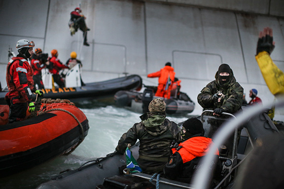 © Денис Синяков / Greenpeace 19 сентября 2013. ФСБ России штурмует ледокол Гринпис Арктик Санрайз, находящийся в международных водах недалеко от платформы Приразломная. После захвата корабля все 30 человек были обвинены Следственным комитетом в пиратстве Можно долго рассуждать, почему это больше не так. Информационный мир стал дико сложным и запутанным, так что отделить журналистику от пропаганды, действительность от манипуляции стало практически невозможно. Домыслы или специально придуманный компромат живут в нем своей самостоятельной жизнью. Большинство моих сограждан не верит в независимость Greenpeace и не поверит в идеализм героев фильма, потому что миф о финансировании их кем бы то ни было, от Госдепа до мифических врагов страны, старательно взращивался и культивировался — и не только у нас, а повсюду. Сейчас трудно поверить в то, что кто-то может рисковать свободой и жизнью, движимый только идеей.