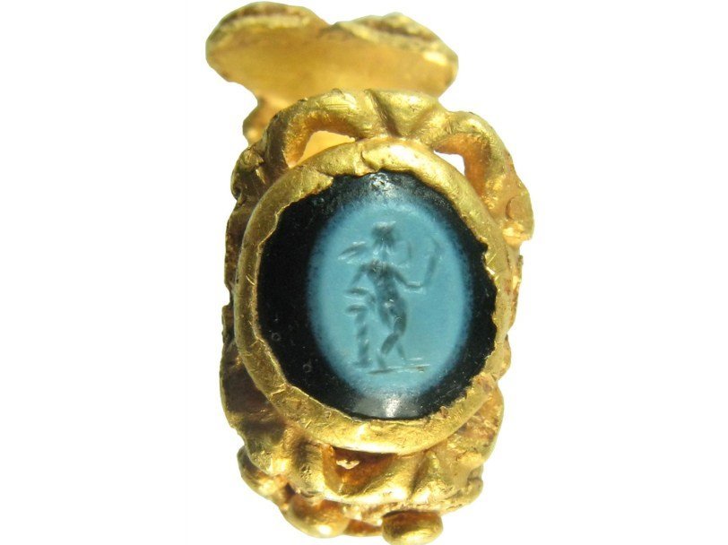 Возле английской деревни Тенгли в Гэмпшире археолог-любитель обнаружил золотое кольцо с резным камнем, возрастом 1700 лет. На камень нанесено изображение бога Амура.