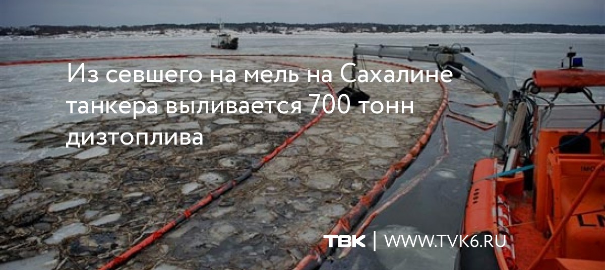 Из севшего на мель на Сахалине танкера выливается 700 тонн дизтоплива