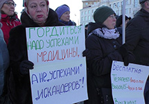 "Мы констатируем, что властями Москвы и Российской Федерации взят курс на массированное свертывание системы общественного здравоохранения в России, на тотальную его коммерциализацию и приватизацию. Начат этап открытого рейдерского захвата отрасли государственного здравоохранения и отказа от соблюдения статьи 41 Конституции, гарантирующей право на бесплатную медицинскую помощь. Аналогичные тенденции имеют место и в других социальных бюджетных отраслях", - говорится в резолюции митинга.