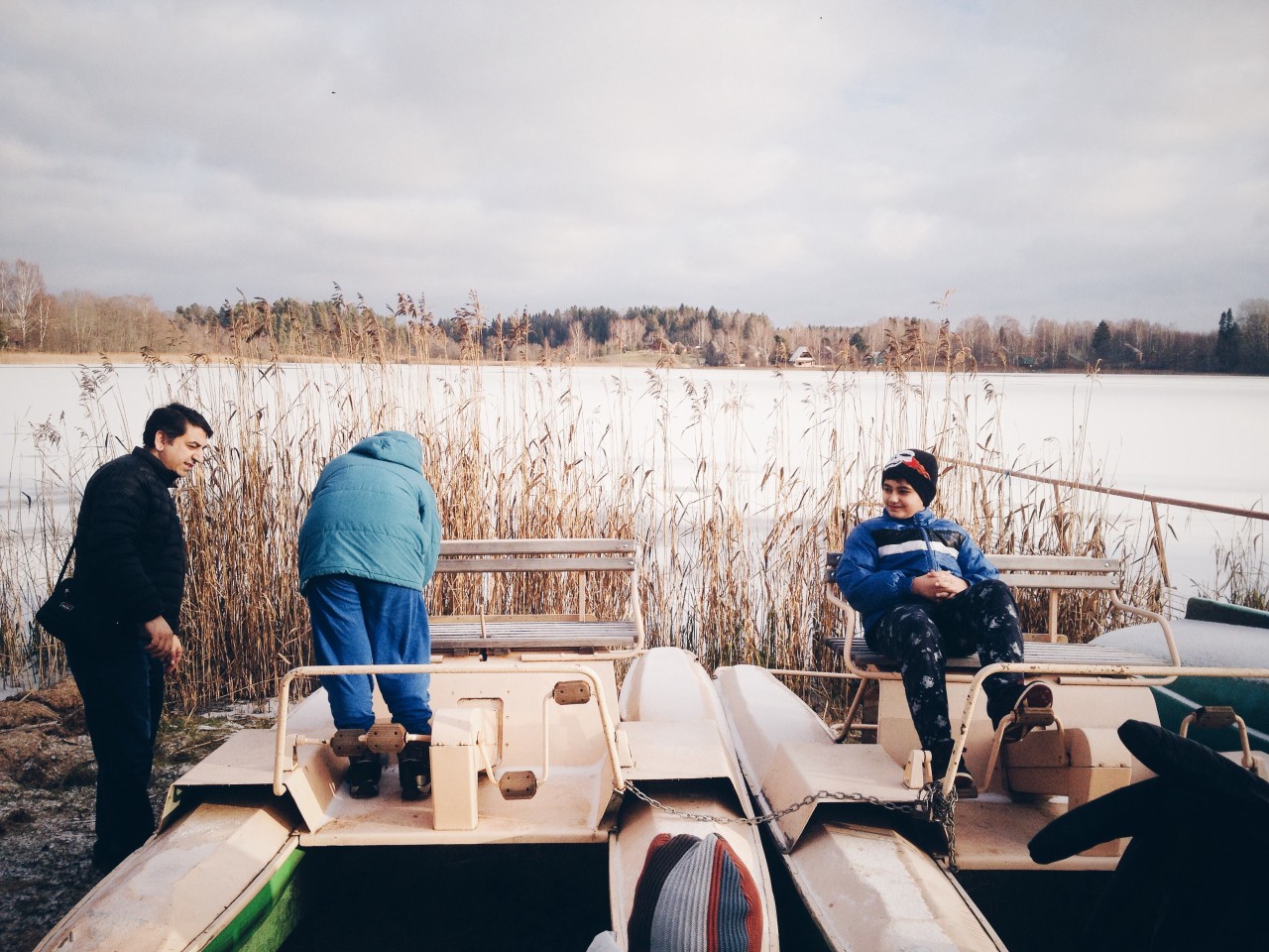Мы выезжаем к берегу озера. 13-летний Рэнас на хорошем английском рассказывает, что только второй раз в жизни видит снег. Его братья и маленькая сестра качаются на качелях и крутят педали катамаранов. Гулистан улыбается, глядя на них. «Когда мы были в Шереметьеве, и я смотрела на своих детей, мне было очень больно, — рассказывает она. — Все болели. Вот люди без документов бегут из войны в Европу, а почему мы не можем нормально уехать?»