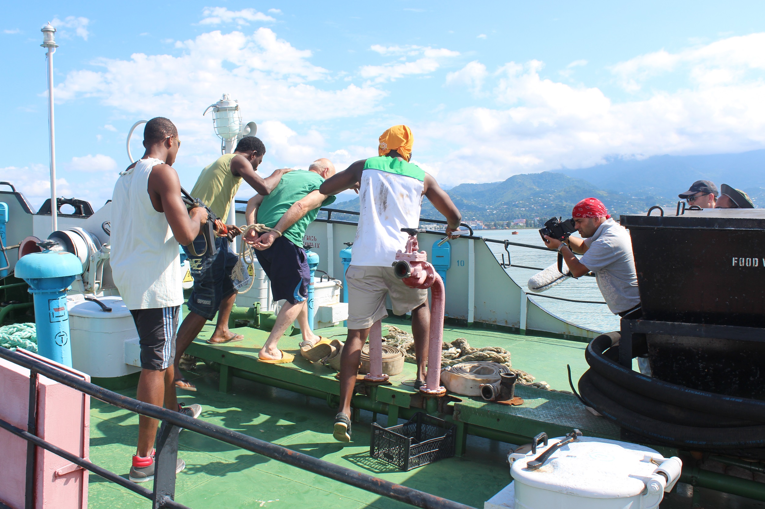 – Все постановочные съемки проводились только в Батуми. В фильм мы также включили реальные архивные кадры освобождения моряков, кадры их встречи на родине, какие-то зарисовки о Сомали – все это мы получили при помощи пресс-центра президента Грузии и от самих моряков. Использовали также видеоролики сомалийского ресурса – этот ресурс часто выкладывает видеообращения захваченных моряков и видеозаписи с пленниками. Я пыталась сама поехать в Сомали, чтобы снимать пиратов, но мне никто не стал помогать в этом – сказали, что не могут гарантировать мою безопасность.