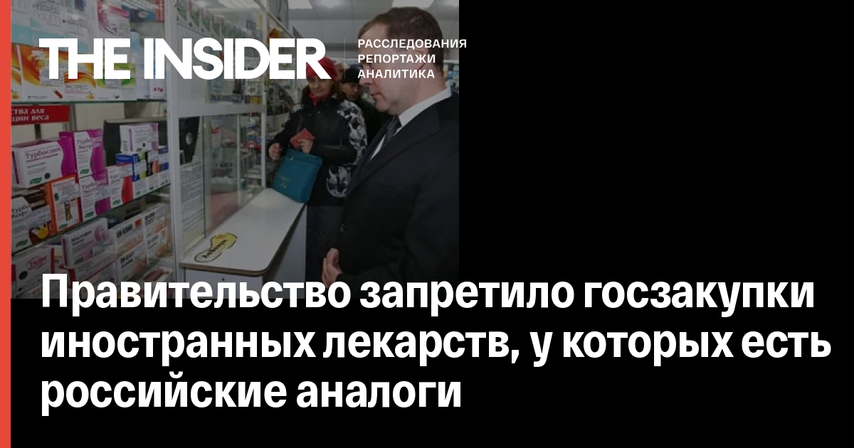 «Государственный заказчик должен отклонять все заявки, содержащие предложения о поставке лекарственных препаратов, происходящих из иностранных государств, страной происхождения которых являются государства – члены Евразийского экономического союза. При этом заявки не должны содержать предложений о поставке лекарственных препаратов одного и того же производителя либо производителей, входящих в одну группу лиц» - говорится на сайте правительства.