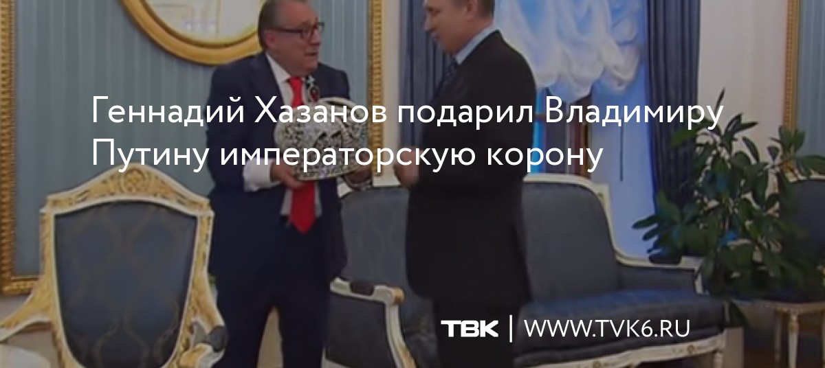 Артист Геннадий Хазанов подарил президенту России Владимиру Путину копию императорской короны. Как сообщает «Интерфакс», подарок был подготовлен ещё ко дню рождения главы государства, который был 7 октября.