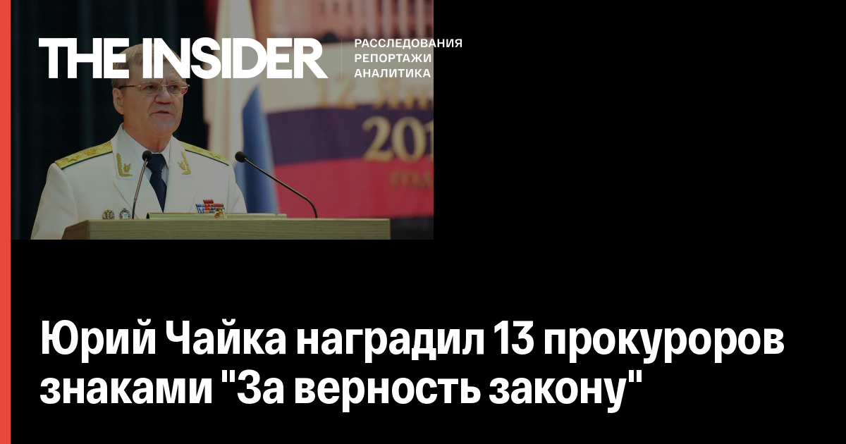 Юрий Чайка наградил 13 работников аппарата Генпрокуратуры знаком отличия «За верность закону» первой и второй степеней на праздничном мероприятии, посвященном дню юриста - передает «РИА-новости».
