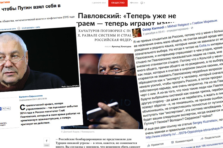 Как некоторые заметили, группа товарищей под руководством Остапа Кармоди в пылких выражениях осудила появление на Кольте интервью с Глебом Павловским. Думаю, это любопытный пример вспышки бесконтрольного характера, который вполне способен нам что-то рассказать про природу момента. Что это так, можно предположить, исходя из абсурдной несвоевременности этой реакции, похожей на внезапный припадок. Павловский появляется у нас как герой интервью уже годами (как и на «Свободе», где выступает Кармоди, «Дожде», «Слоне», в «Новой газете» и так далее). Это явно не новость. C чего вдруг?