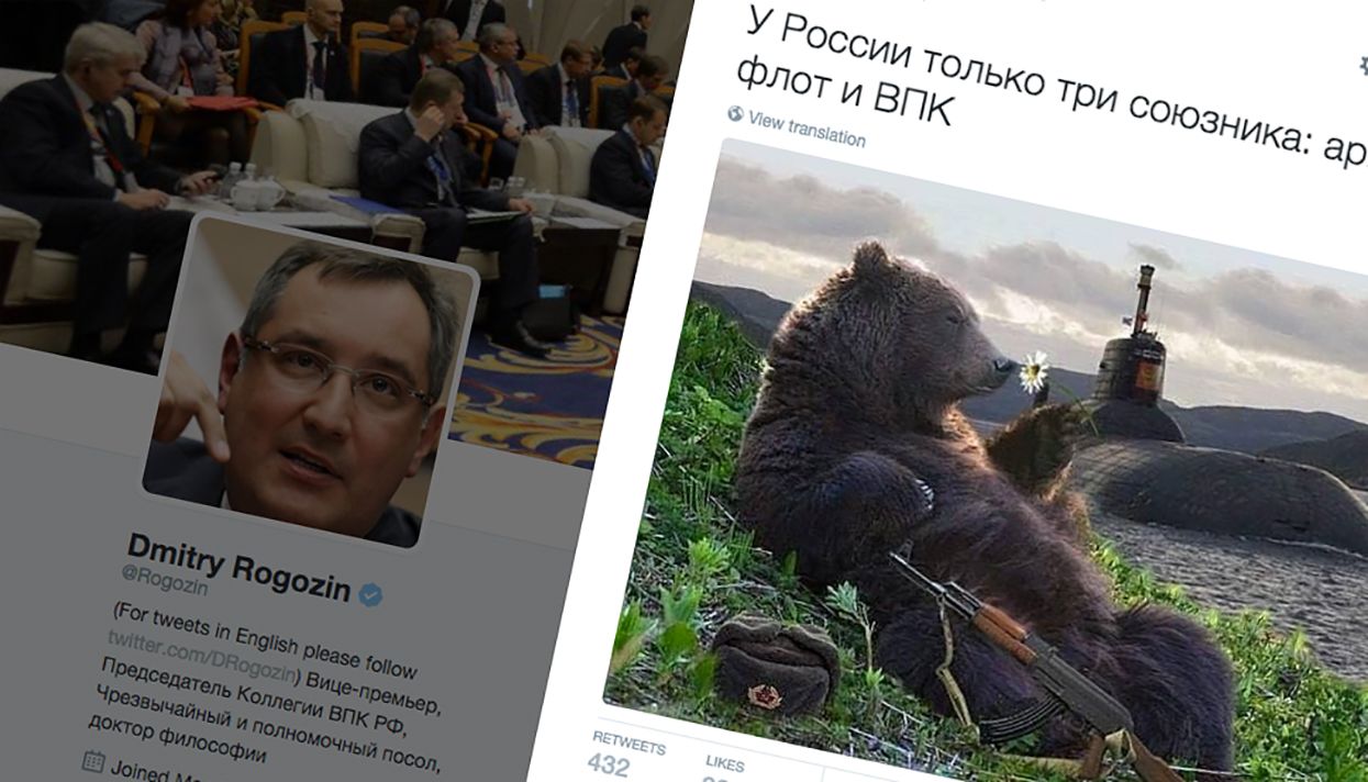 Вице-премьер Дмитрий Рогозин опубликовал в личном твиттере картинку с медведем и лежащими рядом с ним шапкой-ушанкой и автоматом, сопроводив ее подписью: «У России только три союзника: армия, флот и ВПК». Таким образом Рогозин, курирующий ВПК, переиначил цитату императора Александра III — в оригинале речь шла только об армии и флоте.