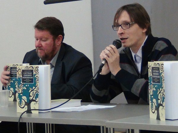 «После того, как Георгий 200 раз переписал книгу и дописал массу умных вопросов, которые я не задал, а надо было задать, получилась эта книга», – отметил он. Сатановский рассказал, что идея книги обсуждалась еще с отцом автора, выдающимся лингвистом Сергеем Анатольевичем Старостиным (1953-2005), создателем исследовательской программы по сравнительно-историческому языкознанию «Вавилонская башня» в рамках Московской школы компаративистики. А уже сын работал над книгой почти десять лет и посвятил книгу отцу.