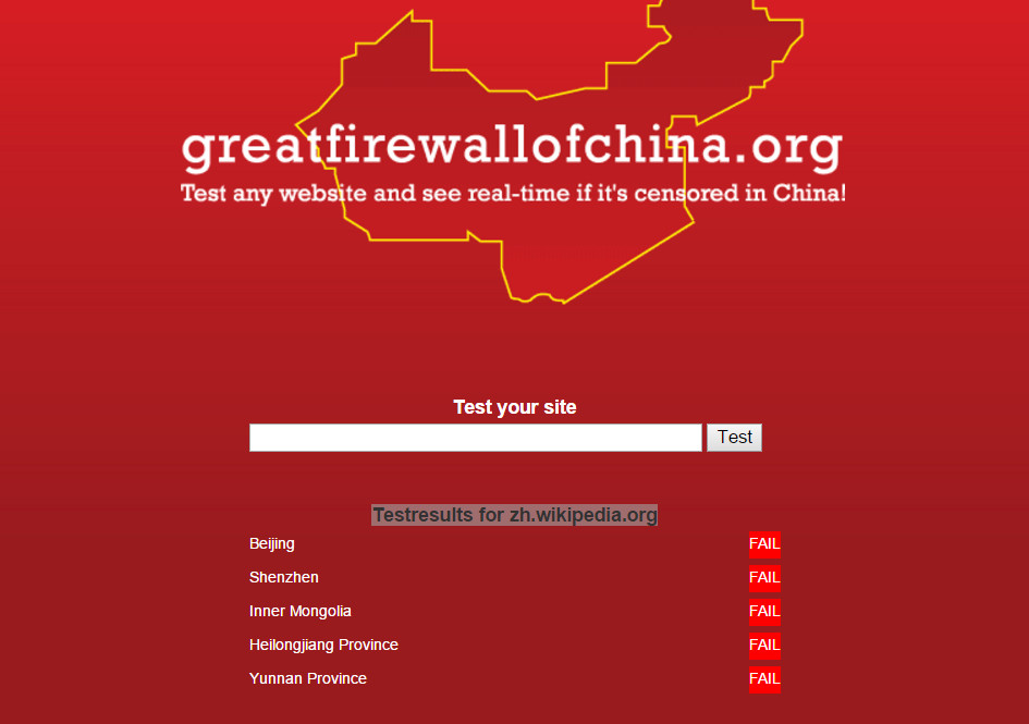 По информации, полученной с помощью сервиса GreatFirewallOfChina.org, китайский сегмент Википедии на самом деле полностью блокируется в стране (при этом общий домен Википедии — wikipedia.org доступен):