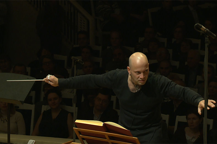 © Московская филармония Монтанари — итальянский дирижер, клавесинист, барочный скрипач, яркое имя среди нового поколения аутентистов. Музыку он лепит выпукло, рассказывает ее как увлекательный роман, в котором нет ни одной проходной ноты, очень четко строит форму и, кроме того, делает это с невероятным сценическим обаянием. Дирижерского пульта перед ним на самом деле не было, был клавесин, на котором Монтанари временами играл — стоя, сидя и находясь в каком-то вообще неудобоваримом положении, расставив полусогнутые ноги в сапогах вокруг табуретки. Для того чтобы освободить для клавесина руки, он всякий раз фирменным движением засовывал за шиворот своих стильно-асимметричных лохмотьев дирижерскую палочку, вызывая дополнительные волны обожания в зале. В Москве Монтанари уже выступал, но тогда мы его не видели, поскольку он находился в яме Новой сцены Большого театра во время оперы Моцарта «Так поступают все женщины». Ближайшая серия спектаклей с его участием — в феврале. И теперь понятно, что имеет смысл смотреть не только на сцену.