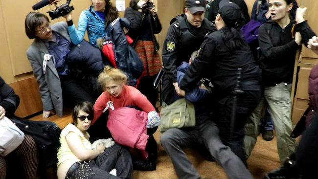 Приставы применяют силу к группе поддержки после приговора Дадину. Фото Дмитрия Борко