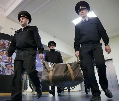 Вот в этом саквояже фельдъегерская служба доставила в Госдуму бюджет-2016, Москва, 23 октября 2015 года