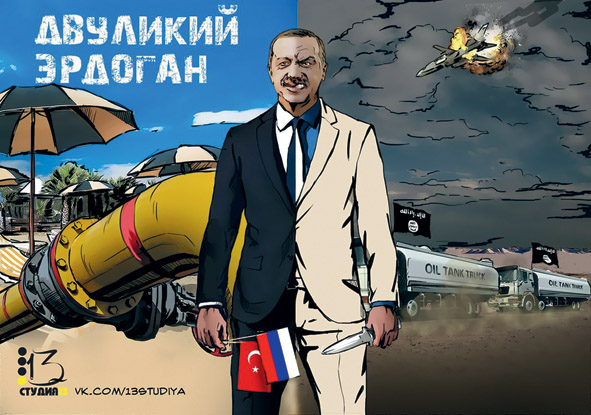 В подписях на демотиваторах из патриотических сообществ главу Турции называют «ЭрдоГАДОМ», «Двуликим», а главный грех, в котором он обвиняется, — предательство. «Эрдоган — не друган», — подытожил общие настроения в своем Twitter популярный актер Гоша Куценко. Владимир Путин заявил об ударе в спину, и хэштеги с цитатой прошли по соцсетям. Но от официальной линии народное и «длянародное» творчество чуть отклоняется.