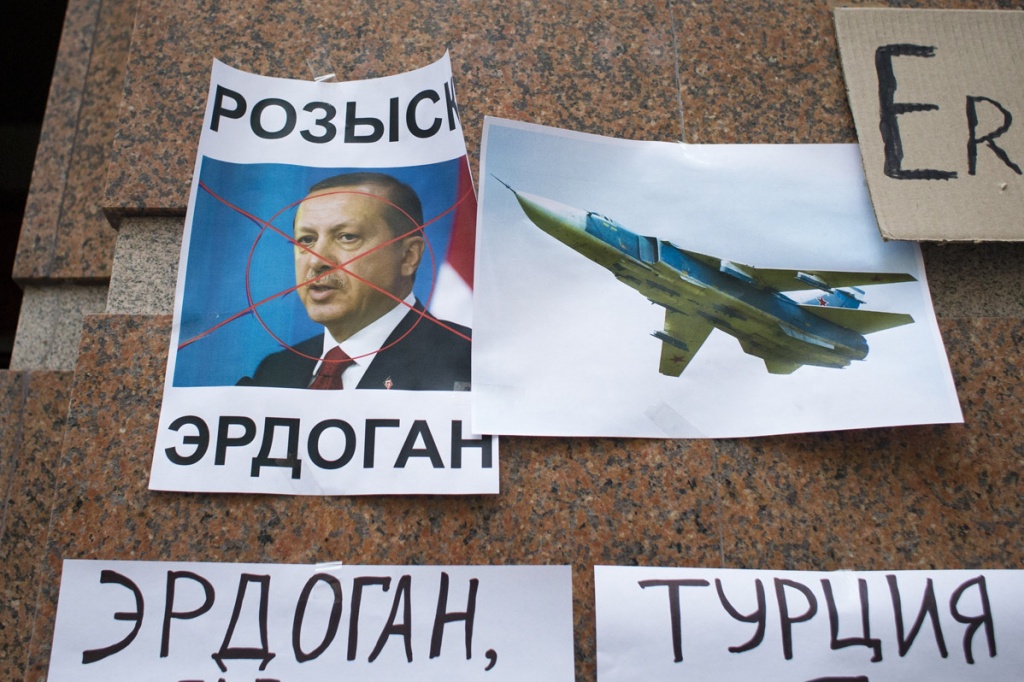 Плакат у турецкого посольства, Москва, 25 ноября 2015 года