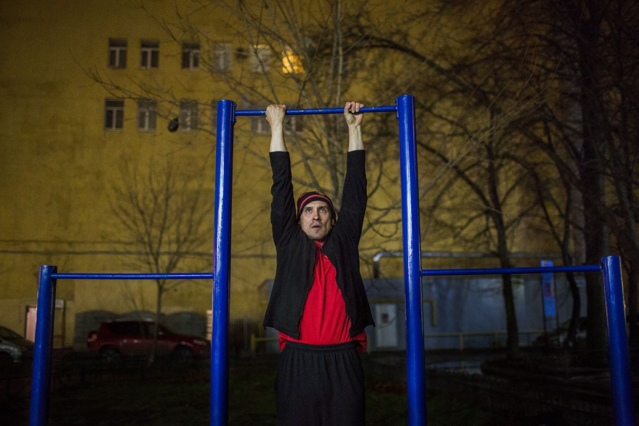После работы Дмитрий занимается на спортплощадкеФото: Ксения Иванова для ТД Срываться не буду, пока есть стабильная работа. Да и Петербург мне нравится. Здесь как-то все-таки попроще. В Москве людей много, скрытые провокации везде, хамство. Здесь-то поспокойнее. Здесь зарплаты меньше, но зарплата — это же в жизни не главное. Зато здесь архитектура такая. Ходишь, и каждый дом — памятник.