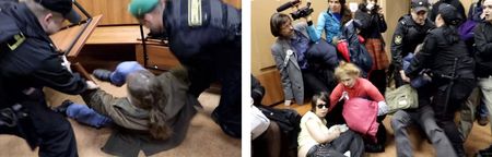 Людей выволакивают из зала суда, Москва 7 декабря 2015 года