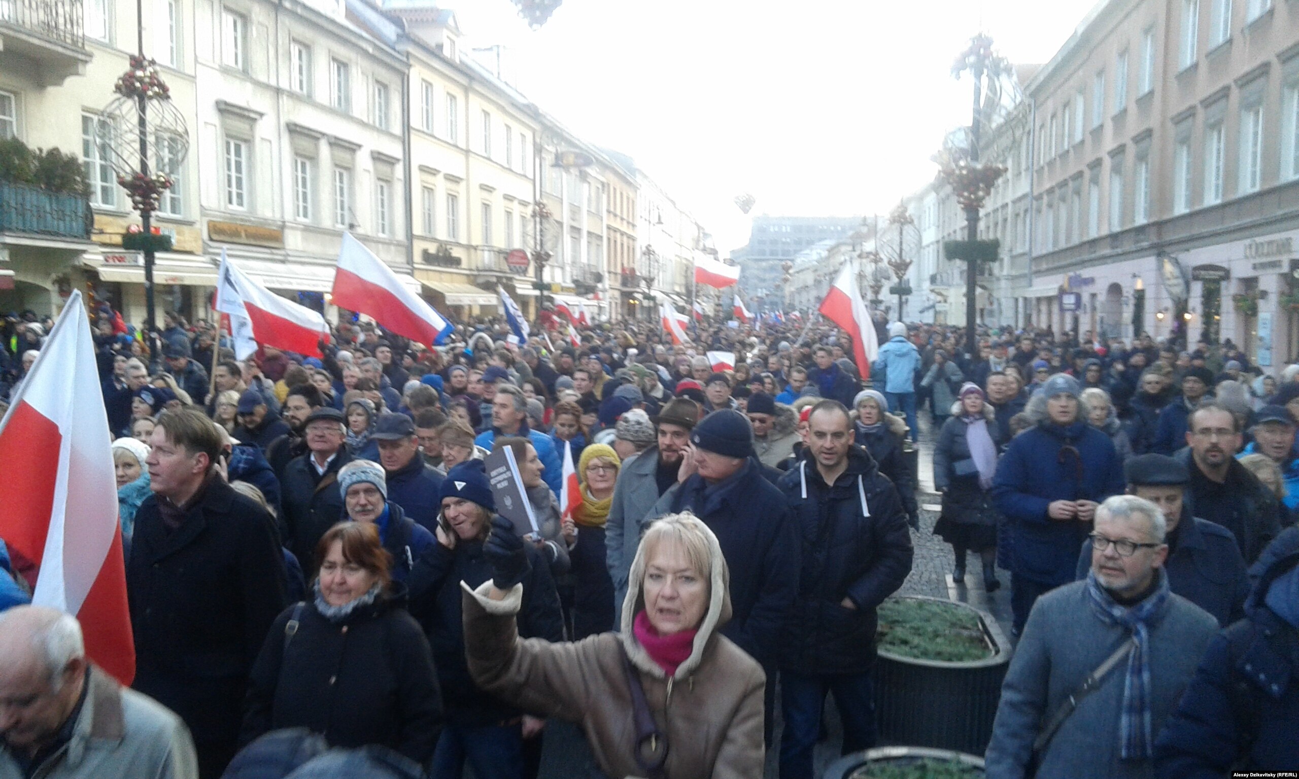 Накануне, в субботу, в Варшаве и других польских городах прошли массовые демонстрации "Граждане за демократию". Их участники – оппозиционные политики, их сторонники – требовали от правящей партии "Право и справедливость" прекратить нарушения Конституции.