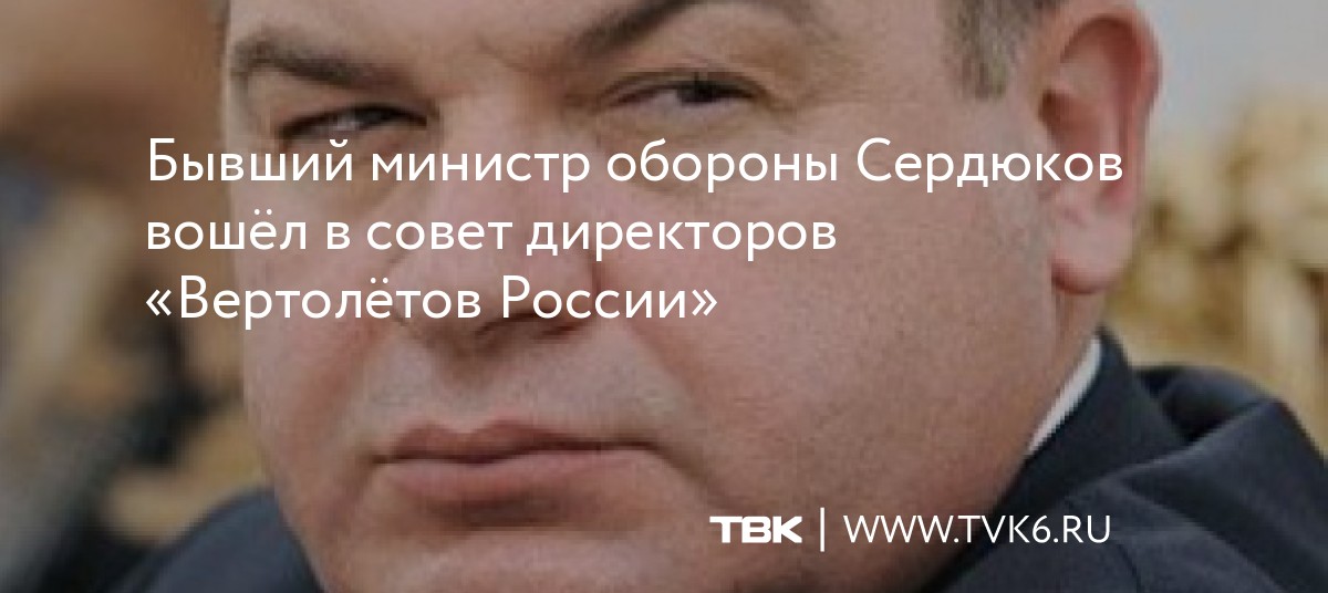 Бывший министр обороны Анатолий Сердюков вошёл в совет директоров «Вертолётов России» (входит в госкорпорацию «Ростех»), сообщает РИА Новости.