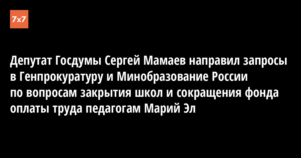 Депутат Госдумы Сергей Мамаев направил запросы в Генпрокуратуру и Минобразование России по вопросам закрытия школ и сокращения фонда оплаты труда педагогам Марий Эл