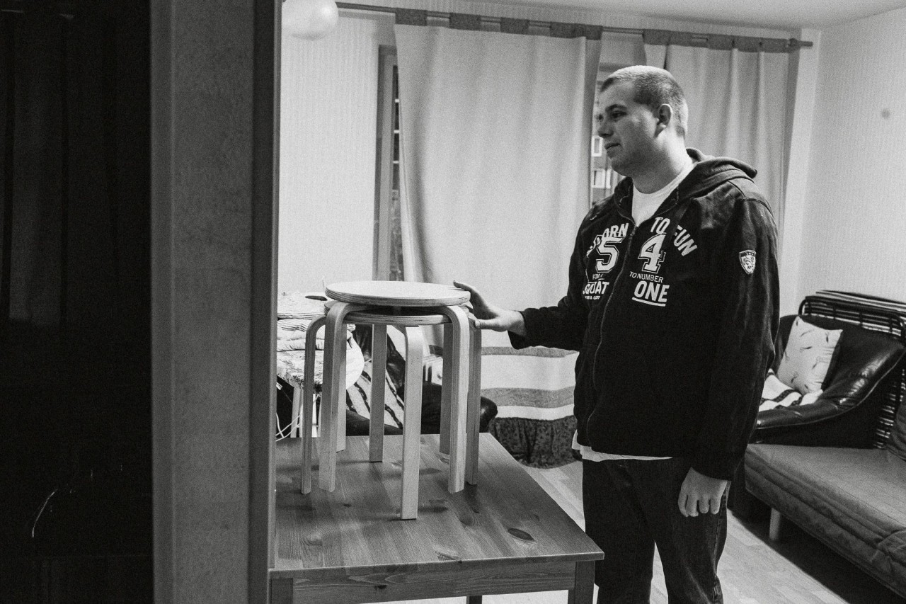 После занятий Саша едет в учебную квартиру.Фото: Валерий Зайцев для ТД Аутизм — неврологическое расстройство, которое не позволяет выстраивать типичную коммуникацию. Человек с такой особенностью видит мир как хаос из людей, вещей и мест и испытывает ужас перед этим явлением. Чтобы как-то успокоиться, он повторяет одно и тоже действие, движение, фразу, составляет списки, — создает замкнутую систему, которая ему понятна. История Саши Курбатова — не самая печальная. Сменив несколько вспомогательных образовательных школ, он закончил 11 классов и поступил в профессиональное училище по специальности «Лозоплетение» в группу для инвалидов. После этого пытался работать, но не сложилось. В 12 лет он получил инвалидность второй степени, тогда же папа ушел из семьи. Елене Анатольевне приходила поддержка сразу с нескольких сторон. «Мы справлялись «мелкими перебежками»: была возможность оставлять его в санатории в Комарове, летом – с моей мамой на даче, помогала Сашина старшая сестра». Со временем Саша рос и все меньше нуждался в постоянном участии, но и помощников не прибавлялось. «Сейчас у дочки своя семья, а бабушки с нами больше нет. В жизни даже взрослого человека с аутизмом мама – это все. От рождения и по сей день мы вместе играем, рисуем, гуляем, плаваем, катаемся на велосипеде, путешествуем, читаем, смотрим фильмы и обсуждаем их. У него никогда не было друзей, он везде был изгоем. И Центр «Антон тут рядом» стал для нас настоящим спасением. Здесь Саша на своем месте, занят делом, его все любят».