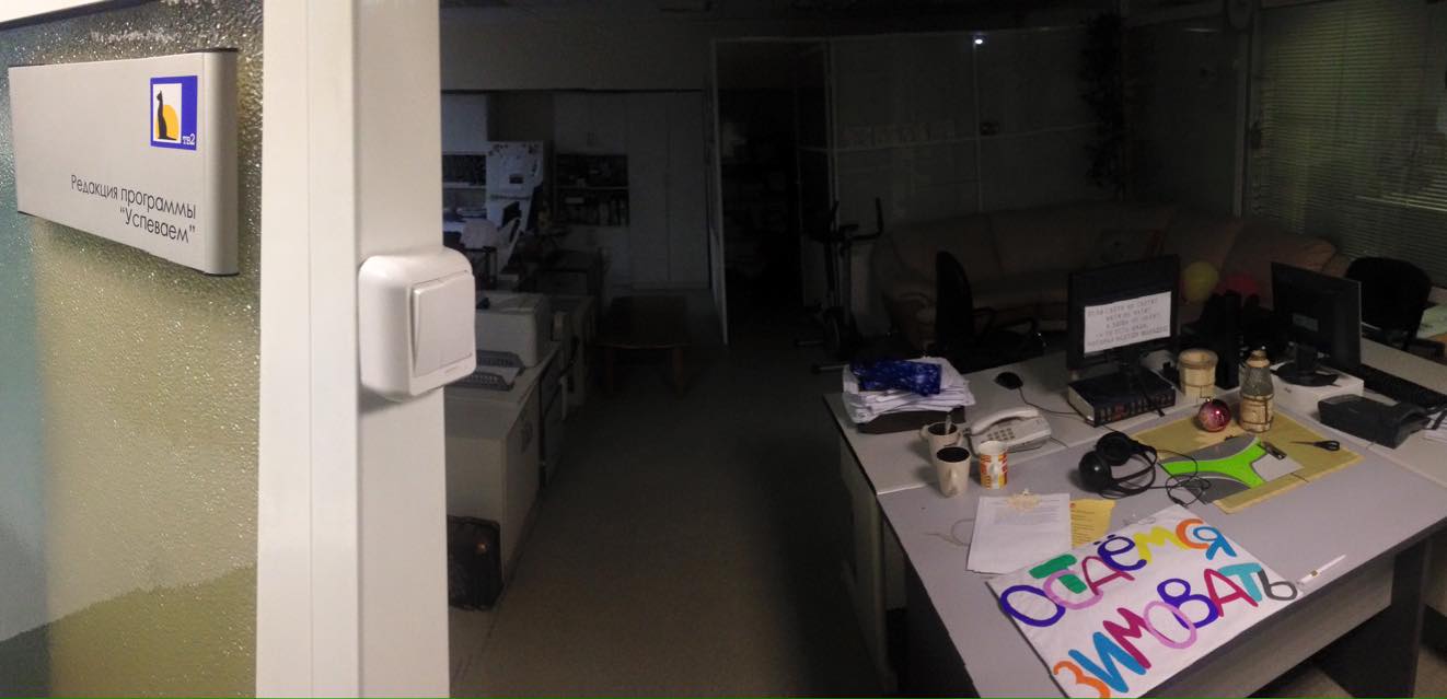 На фото: пустующая редакция утренней программы "Успеваем" на ТВ-2