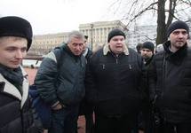 Туда же явились и несколько десятков членов "Великого отечества". Они принесли плакаты с портретами Адольфа Гитлера, Йозефа Геббельса, Генриха Ягоды, Андрея Власова и других исторических деятелей, осуждаемых официальной пропагандой. Каждый из портретов сопровождался надписью "Жертва сталинских репрессий".