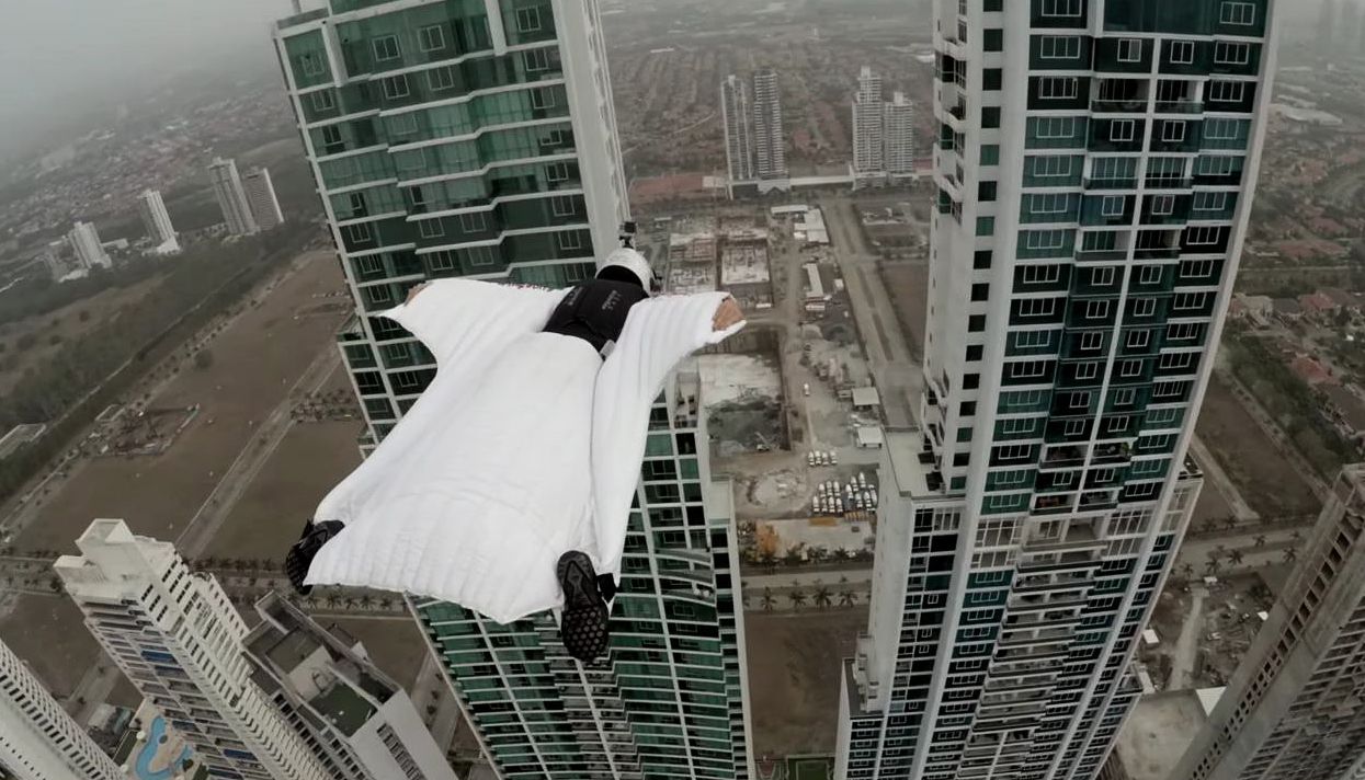 Итальянская модель и экстремальная спортсменка Роберта Манчино прыгнула с вертолета и пролетела между двумя небоскребами в городе Панама.