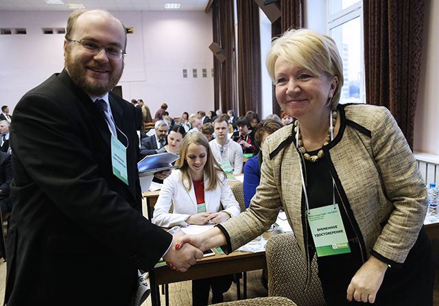 Было сразу понятно, почему «Яблоку» так симпатизирует интеллигенция. Спорили цивилизованно, на личности не переходили. Имен старались не называть. Если делегат говорил, что партии «нужен опыт, а эксперименты ничего не дадут», это значило, что он поддерживает кандидатуру Явлинского. Если говорили об омоложении, привлечении «креативного класса» и коалициях с другими оппозиционными партиями — имелись в виду другие кандидаты. Судя по разговорам в перерывах, из новых людей делегатам явно нравилась кандидатура Шлосберга.