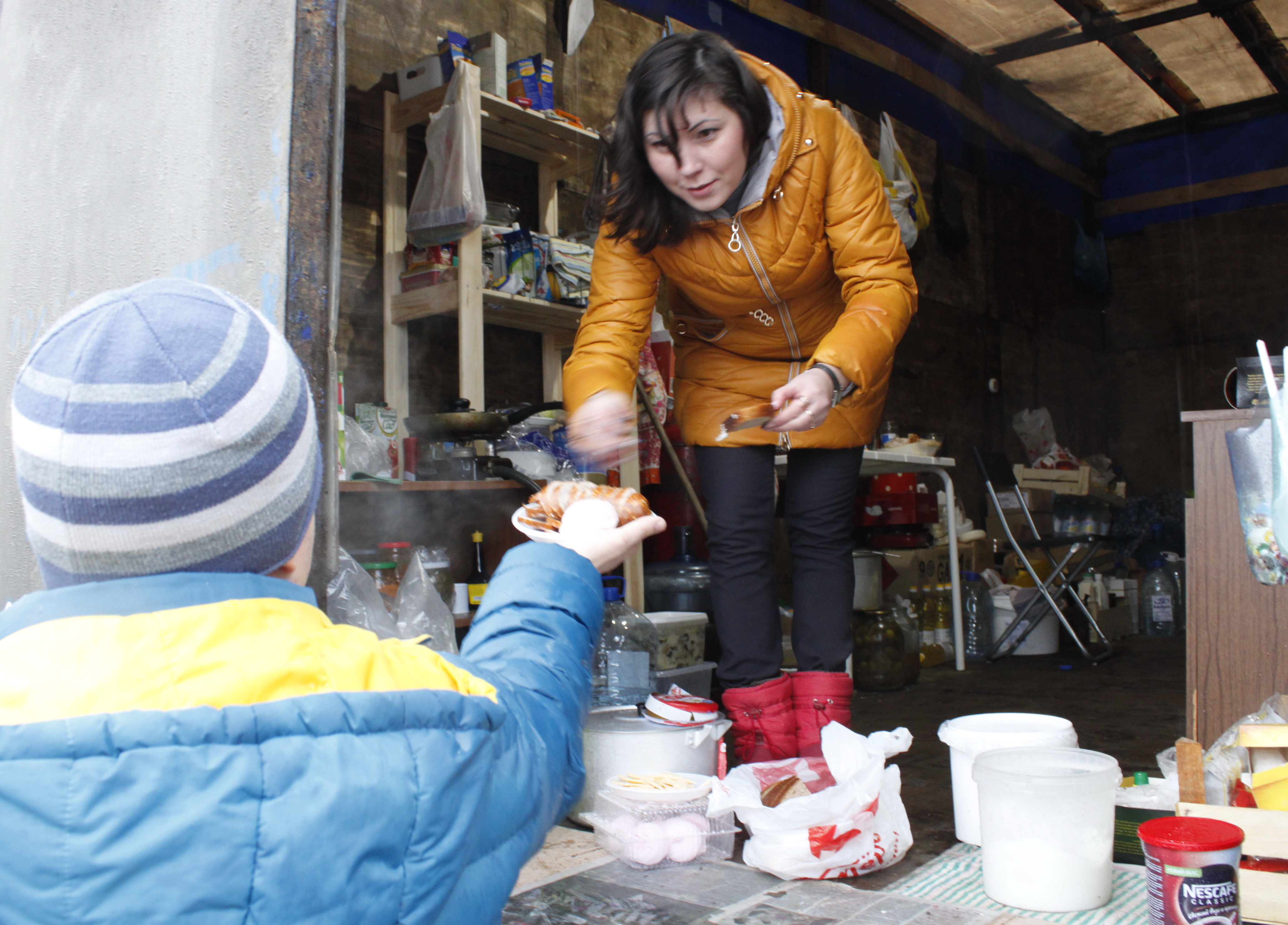 – Очень много людей, которые сюда приезжают, просто жаждут получить к себе домой кого-нибудь из дальнобойщиков или меня, чтобы предоставить душ, постель, горячую пищу. Поэтому с этим проблем нет. Плюс привозят очень много еды. Ребята сами готовят. Я даже не ожидала – готовят они очень хорошо. А сплю – как придется, иногда здесь в машине, иногда получается отъехать домой. Всегда по-разному – зависит от того, что здесь происходит.