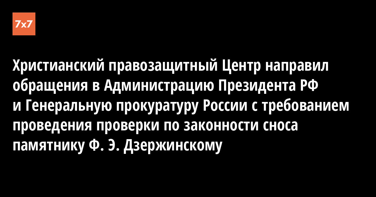 Христианский правозащитный Центр направил обращения в Администрацию Президента РФ и Генеральную прокуратуру России с требованием проведения проверки по законности сноса памятнику Ф. Э. Дзержинскому