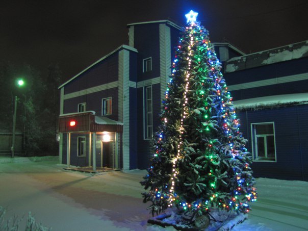 Как всегда давно мерцают и переливаются разноцветными гирляндами аккуратная ёлочка у входа на территорию «Спецавтодора» и у «Водоканала», яркая красавица напротив проходной газоперерабатывающего завода, небольшая симпатичная лесная гостья у городского отдела полиции и натуральная ель в палисаднике железнодорожного энергоучастка. Видно её издалека. Интересно, что высотой она с трёхэтажный дом и не привезена, а растёт естественным путём. Её наряжают каждый год как раз к профессиональному празднику энергетиков.