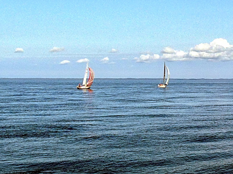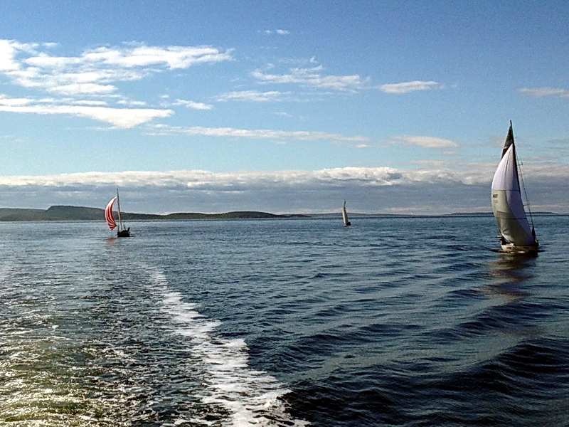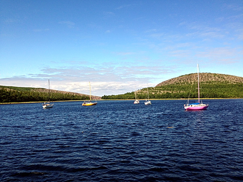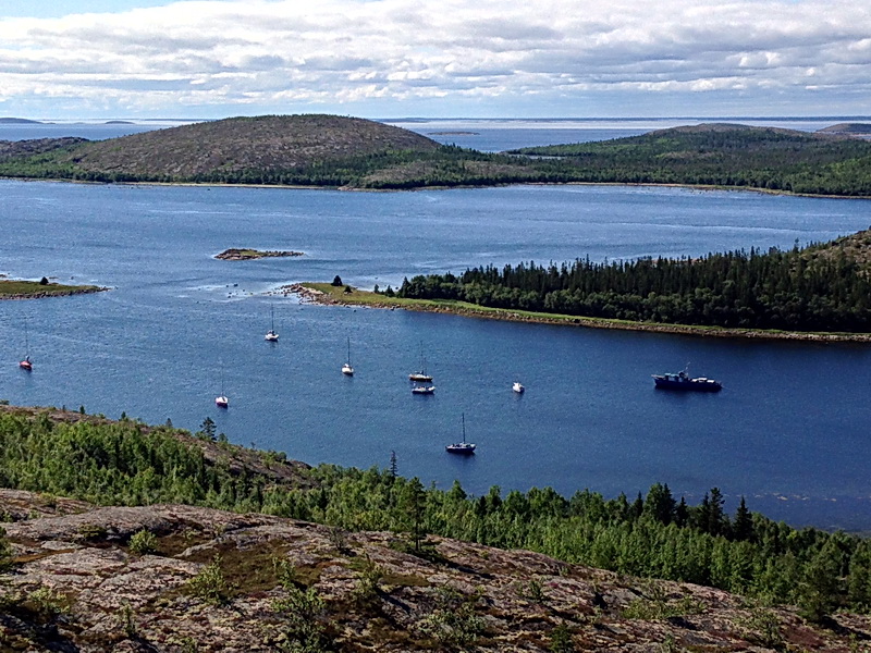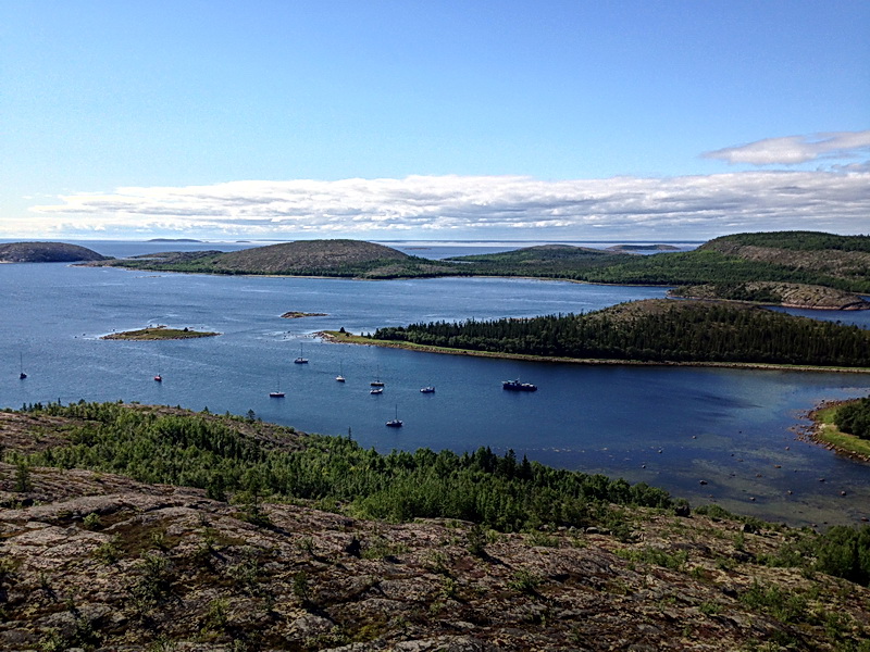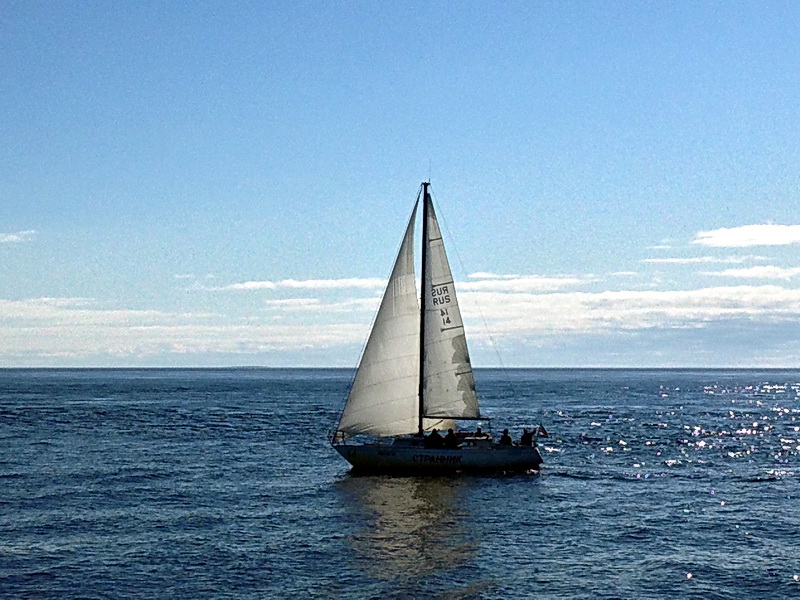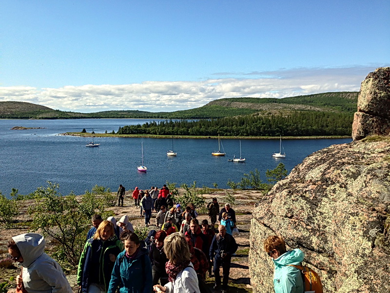 В этом году Соловецкая регата проводилась по новому маршруту. Один из этапов гонки предполагал финиш на архипелаге Кузова и старт с Кузовов в 13.00 следующего дня. Так сложилось, что моя экскурсия проходила как раз в день старта. Яхты мы увидели на входе в бухту Кузовов...