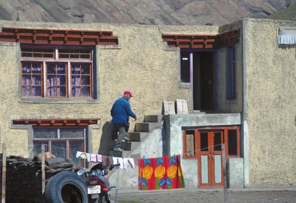 Например, на 240-м км между Каргилом и Падумом устроены лишь две небольших придорожных харчевни (в Паркачике и Рангдуме), которые предлагают весьма ограниченное полувегетарианское меню (нет мяса, но можно заказать яичницу). В этих же селах невзыскательные путники могут найти ночлег, в том числе «этнического» типа, т. е. в домах местных жителей. В прошлом номере мы описали нашу поездку от Каргила до Рангдума и ночевку в таком гестхаусе [1].