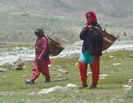 Женщины в бордовых платьях, красочных платках или оранжевых шапочках с затейливыми отворотами, радостные веселые дети и мужчины шли вдоль дороги или ехали на автомобилях. Джипы, битком набитые паломниками (с еще несколькими пассажирами на крыше), разъезжались с монастырского праздника [3]. Празднично разодетых людей, группами и по одиночке, мы видели и дальше до самого Падума.