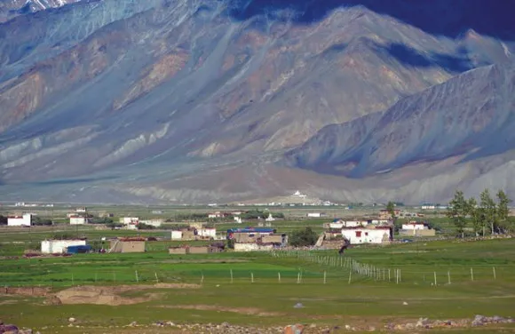 Слева от Падума в отдалении виднеется островная пойма Доды с зарослями тамариска. На юге Падумскую впадину ограждает еще одна стена гор, идущая вдоль нижнего течения Царапа и начала народившейся здесь реки Занскар.