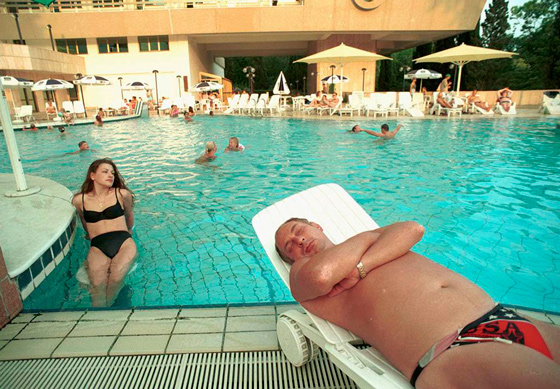 © Евгений Кондаков Бывшая модель со спутником в бассейне отеля «Рэдиссон» в Сочи, 1996 г. В 1990-х сексуальная жизнь в России очень интересовала западные журналы. Сейчас она не вызывает большого интереса, потому что приблизилась к среднеевропейским стандартам. Хотя иногда появляются темы, которые привлекают внимание. Например, я недавно снимал сюжет для Spiegel о стриптиз-клубах для женщин. В Западной Европе они меньше распространены и не пользуются такой популярностью, как в России. У нас это — успешный и доходный бизнес. Многие русские женщины ходят в них регулярно и ведут себя там как мужчины.