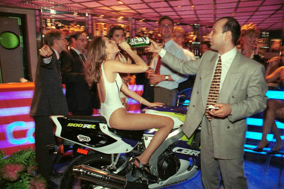 © Евгений Кондаков Модель в перерыве презентации в московском клубе Up&Down. Презентация чего на этот раз — мотоциклов, алкоголя или купальников — никто не пытался понять. Какая разница? 1994 г. С Вейцлером мы работали по дружбе — гонорары журнал не платил, потому что нечем было расплачиваться. «Андрей» выходил нерегулярно, от случая к случаю — когда удавалось найти спонсоров на издание. Однажды завхоз «Андрея» скрылся из редакции журнала, прихватив с собой тираж одного из номеров вместо зарплаты. Такое тогда было время.