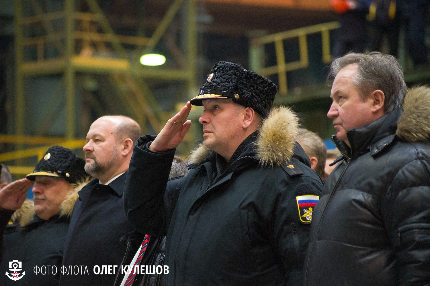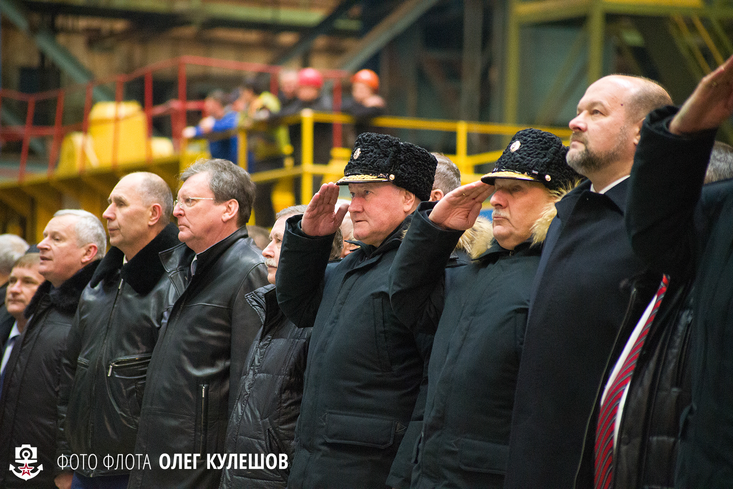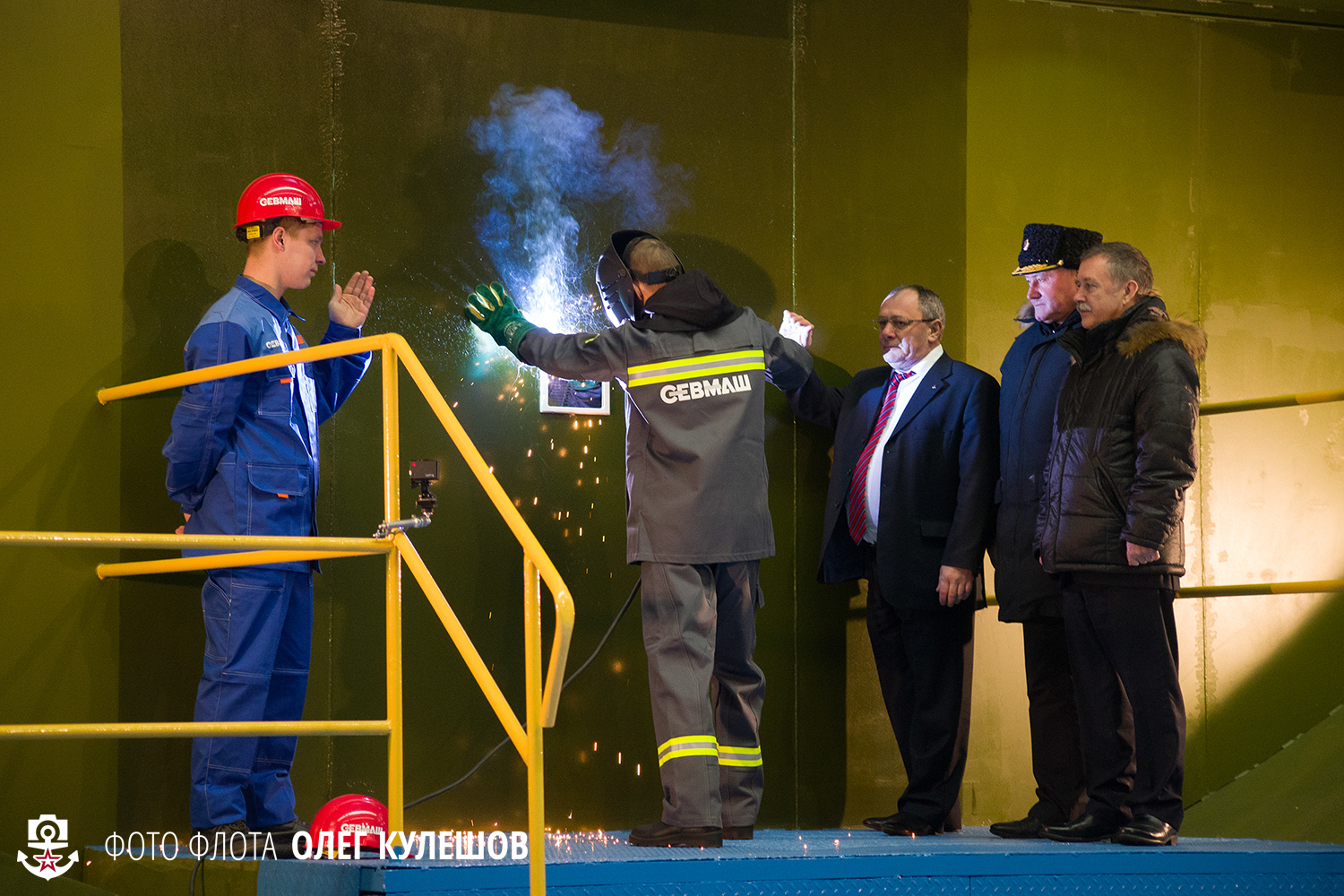 Также при закладке присутствуют и северодвинские корабелы. Судя по их сосредоточенным лицам, работы предстоит много.