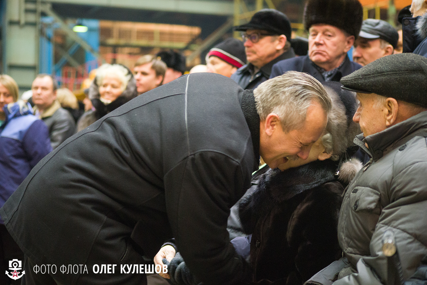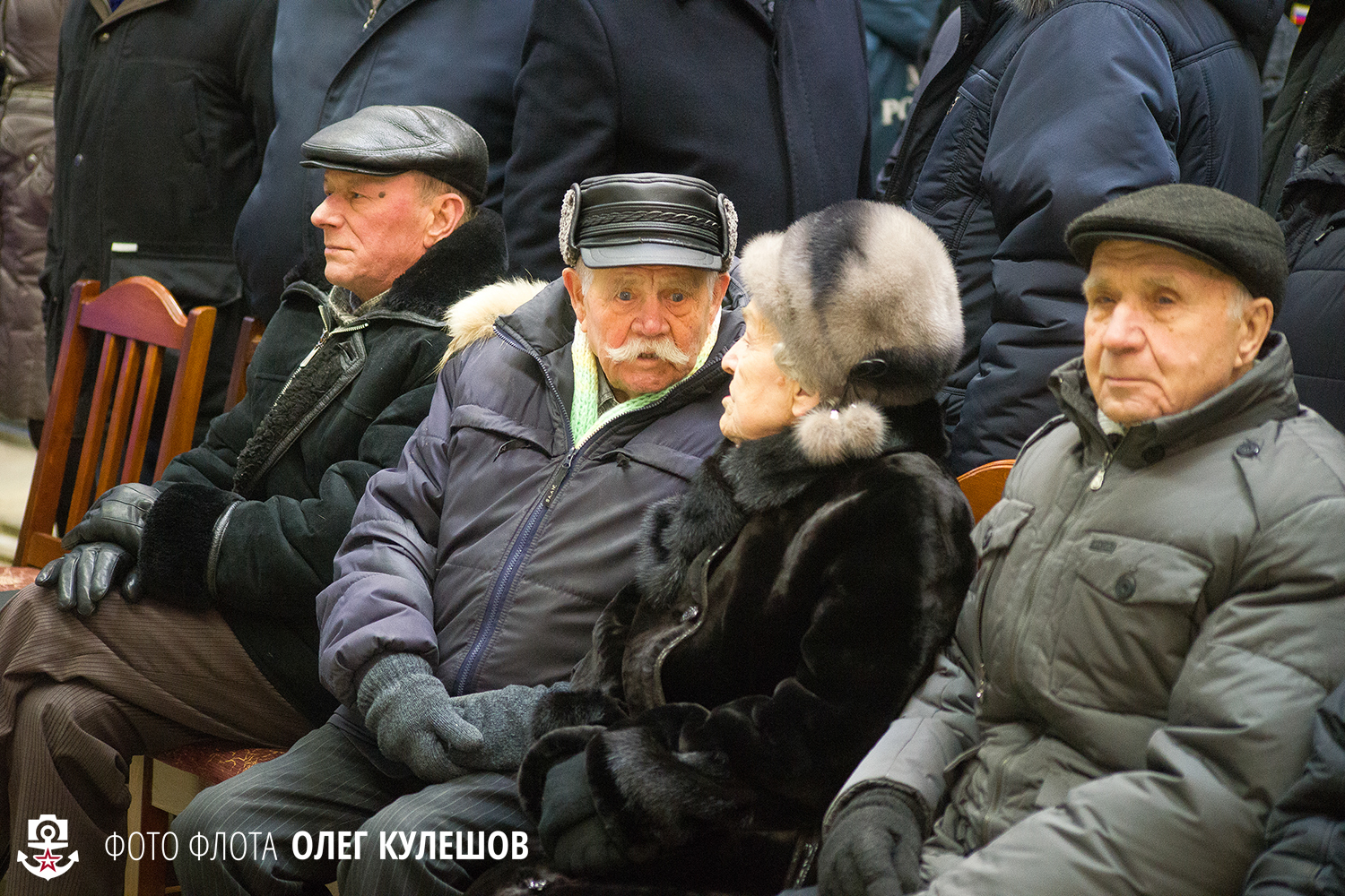 На церемонию пригласили ветеранов "Севмаша". Возможно, эти люди принимали участие в постройке атомных подводных крейсеров стратегического назначения еще проекта 941 "Акула" — самых больших подводных лодок в мире. (А тут есть "Дмитрий Донской" внутри иснаружи)