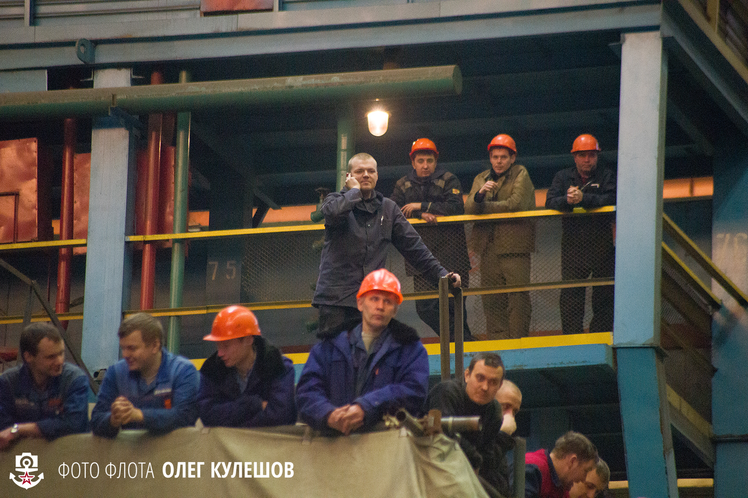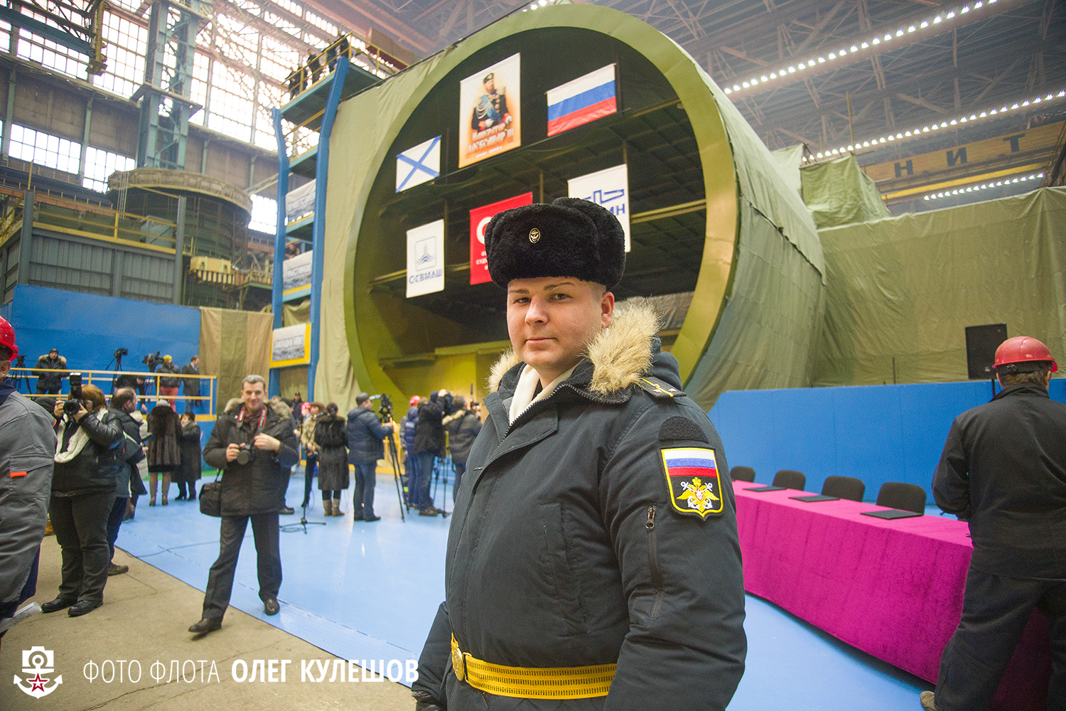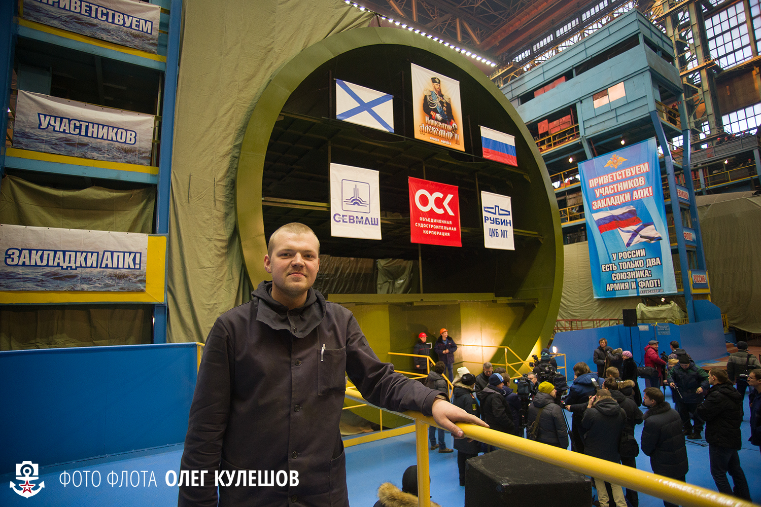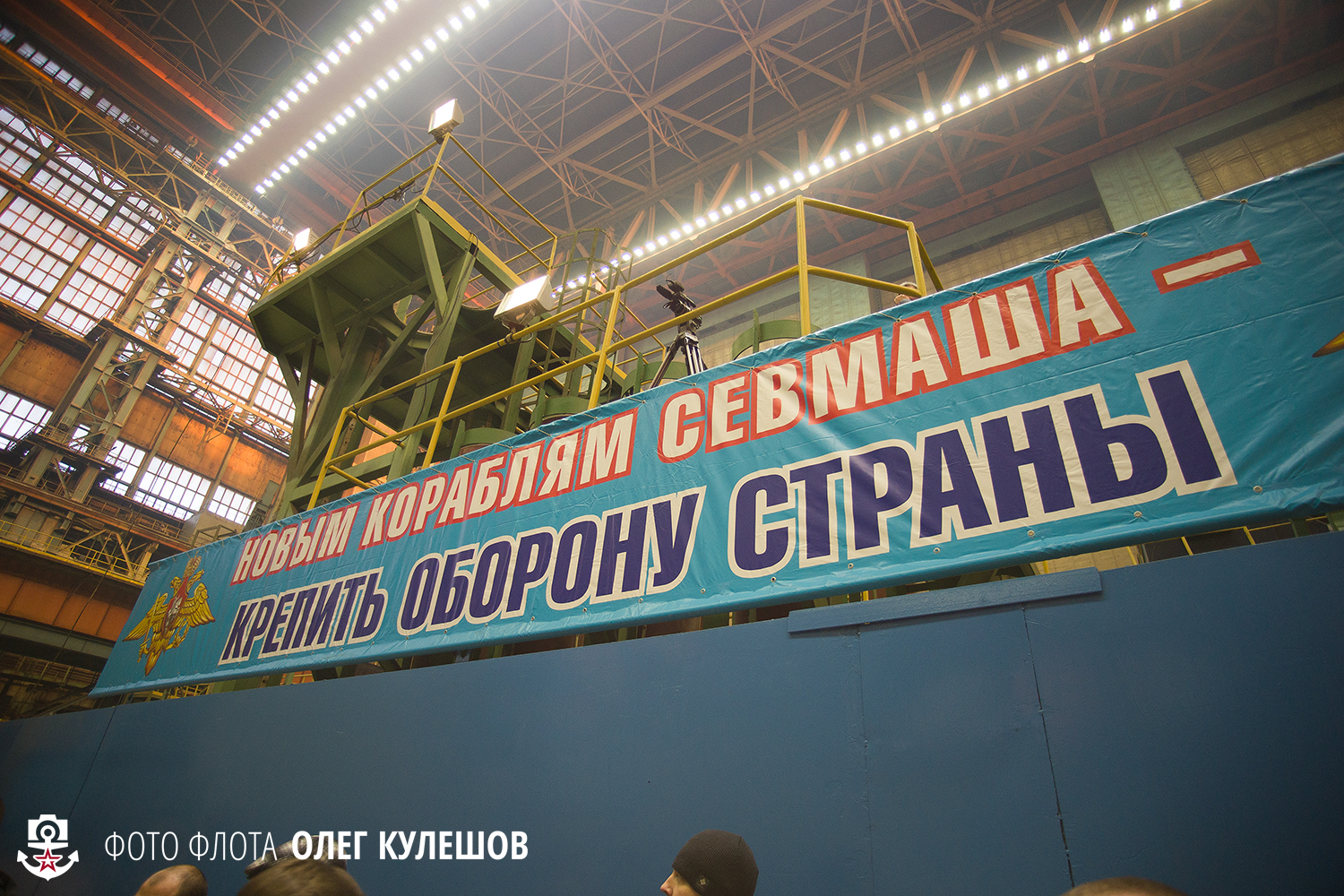 3. Вокруг патриотические лозунки и прекрасный новый свет Севмаша. Все фотографы заценили новые приборы освещения предприятия - фотографировать в кайф!